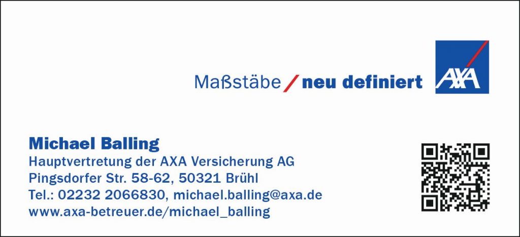 Die AXA Hauptvertretung Michael Balling in Brühl ist seit dem 01.01.2011 Ihr zuverlässiger Ansprechpartner bei allen Fragen rund um Versicherung, Vorsorge und Vermögen. Wir sorgen dafür, dass Sie sich um nichts kümmern müssen.